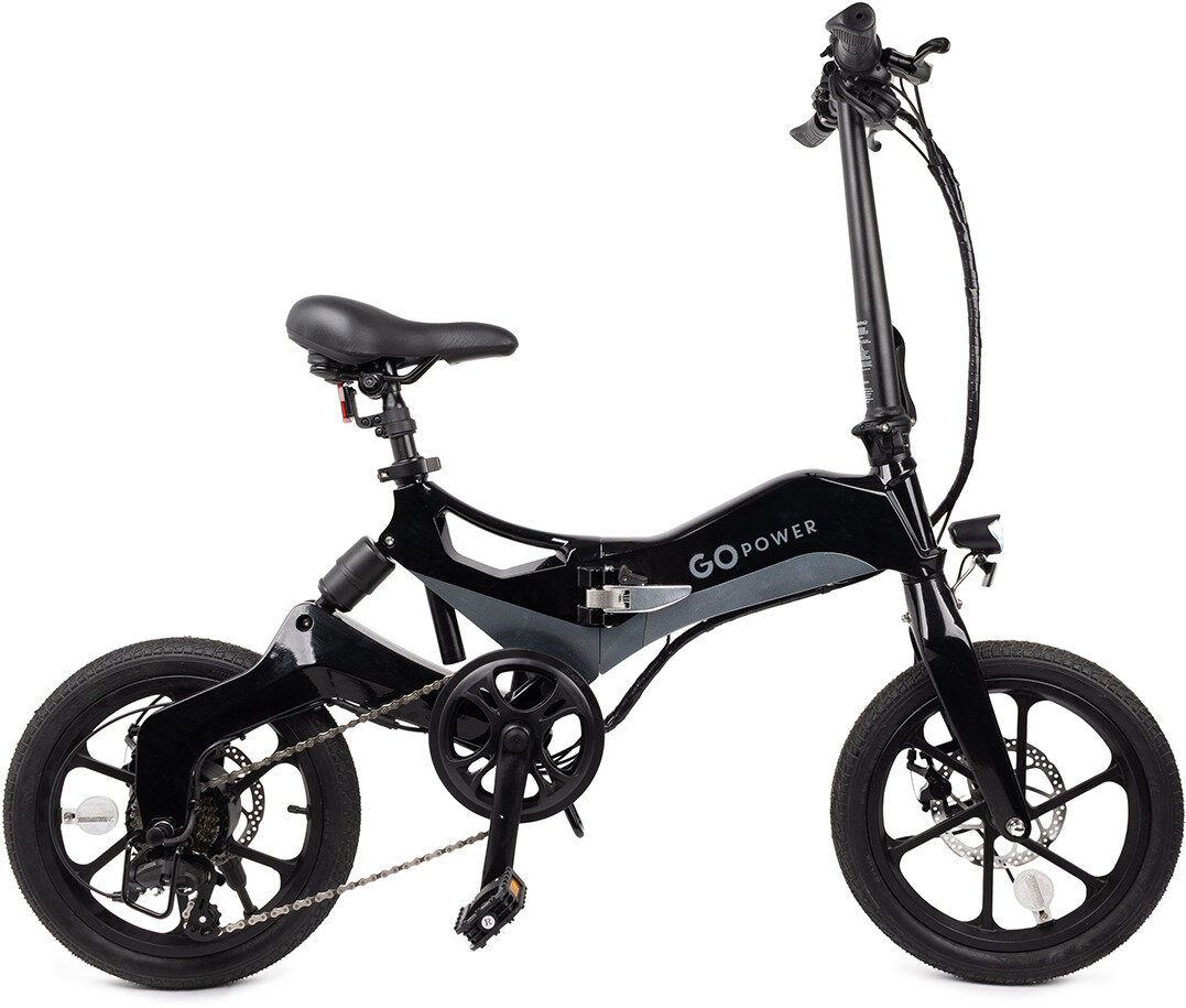 The GoKlik ebike is a compact and versatile electric bicycle designed for urban commuting. With its diminutive size, this ebike is ideal for navigating crowded city streets, narrow pathways, and tight parking spaces. Featuring an ultra-lightweight frame and foldable design, it is easily portable and can be conveniently stored in small spaces. Its 350W motor provides a seamless and eco-friendly riding experience, allowing riders to effortlessly cruise through city traffic without the need for excessive physical exertion. Equipped with a swappable rechargeable battery, 7 speed gear shifter, rear shock suspension and 16'' wheel, the GoKlik conquers hills like a boss for the reliable precision and ride control that every cyclist craves.